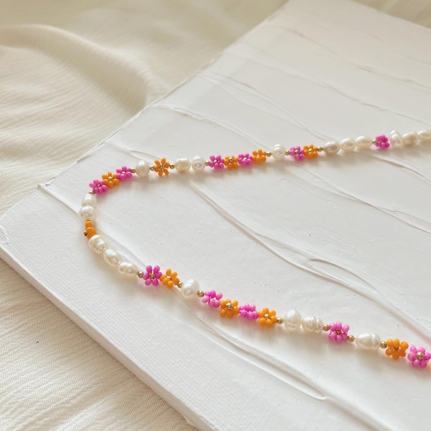 ORANGE & PINK FLOWER NECKLACE
